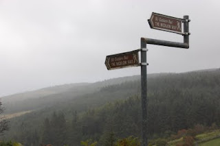 I layered up and with my splits still within 10% slower than Ryan's I decided to go on. Djouce would have been the most exposed area and it should get better from now on. The weather forecast had also predicted an improvement of the weather during the day, with wind and rain dying down - I really hoped they were right. The next bit was still fairly wet but less windy. With Lough Tay far below me I ripped down the tarmac road and then right into the fire road. I turned right again into a single trail where a tree branch almost ripped my helmet off my head and then it was down towards Lough Dan. A bit more fire road, field crossings, tarmac and a trail along the top of a mountain and I was entering the forests towards Glendalough. A small mistake along some singletrack due to misleading signage and I was on the last climb up the fireroad before descending into Glendalough Valley. Finally, I arrived at Glendalough car park in good time for another pit stop.