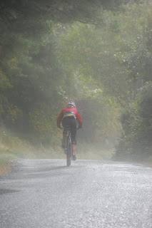 Thank god the next off road section was also mostly dry, in complete contrast to the bog that Ryan had to wade through and I started enjoying myself. I was getting more and more thirsty and then I was getting confused as to how far I was from our next meeting point. So I called him and asked him where the hell he was?? It turned out that I was only about another few kilometers before our designated meeting point where he waiting for me but he drove up from it anyway to meet me further up. This was the last official meeting point and I only had about 20km to go. Soon I was entering the 2nd last off road section, a quick fireroad spin up a hill and down again. Then the bit along the road where Ryan hit the wall - a particularly steep bit of tarmac. Ryan drove behind me and was shouting encouragement at the really steep hill, except that this was a really steep hill before the REALLY REALLY steep hill. I dropped into my smallest gear on the bike to make it up the really really steep hill - I so didn't want to live with the shame of getting off the bike on this bit. Finally I entered the last off-road section. I was only a couple of kilometers from the finish and I was still well under 9hours.